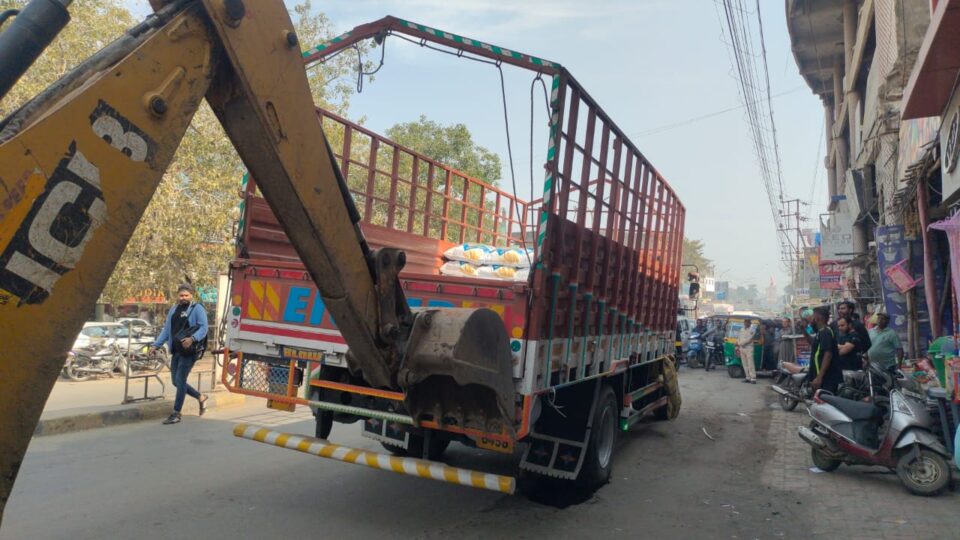 ભરૂચનાં સ્ટેશન રોડ ઉપર ટેમ્પો ફસાઈ જતા ટ્રાફિકજામ સર્જાયો.