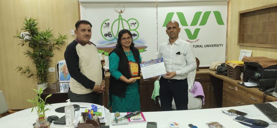 “ઈકોનોમાઈઝીંગ રીસોસિસ ઈન બનાના કલ્ટીવેશન થ્રુ ડ્રીપ ઈરીગેશન ઈન સાઉથ ગુજરાત ” વિષય અન્વયે સુંદર પ્રસ્તુતિ અર્થે તેમને “ બેસ્ટ પોસ્ટર પ્રેઝન્ટેશન ” તરીકેનો એવોર્ડ એનાયત કરવામાં આવ્યો હતો. અર્થશાસ્ત્ર વિષયમાં તેમની આ સફળ સંશોધનની કારકીર્દી કૃષિક્ષેત્રે તથા વૈજ્ઞાનિક માટેના અભ્યાસ માટે ઉચ્ચ અને શ્રેષ્ઠ યોગદાન રહેશે. તદઉપરાંત કૃષિ મહાવિદ્યાલય, નવસારી કૃષિ યુનિવર્સિટી ભરૂચ કેમ્પસના આચાર્ય ડૉ. આચાર્ય ડો. ડી. ડી. પટેલ તેમજ સહઅધ્યાપકોએ રાષ્ટ્રીય મહાસંમેલનમાં એવોર્ડ મેળવી ઉત્કૃષ્ટ પ્રદર્શન કરવા બદલ ડૉ. દિપા હીરામઠને અભિનંદન પાઠવ્યા હતા.