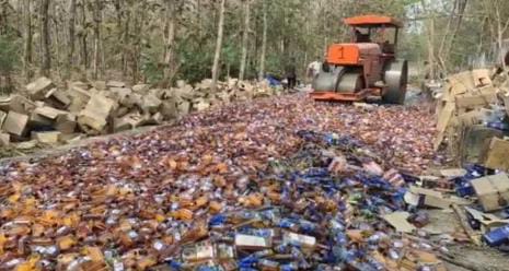 ભરૂચના ચાવજ ખાતે વિડિયોકોન કંપની પાસેના રસ્તા ઉપર આજે ભરૂચ, જંબુસર અને રેલવે વિભાગની હદમા ઝડપાયેલ 3.50 કરોડની કિંમતના વિવિધ બ્રાન્ડના ભારતીય બનાવટના દારૂના જથ્થાને ઉચ્ચ અધિકારીઓની નિગરાનીમા બુલડોઝર ફેરવી નાશ કરવાની પક્રિયા હાથ ધરવામાં આવી હતી.