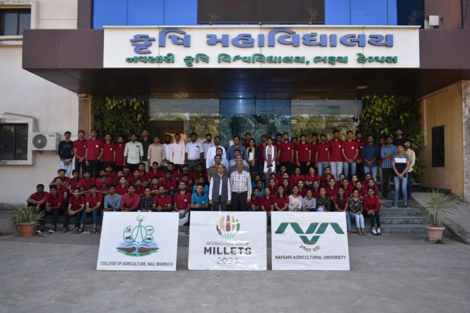 કૃષિ મહાવિદ્યાલય, નવસારી કૃષિ યુનિવર્સિટી ભરૂચ ખાતે આંતરરાષ્ટ્રીય મિલેટ વર્ષ ૨૦૨૩ નિમિત્તે મિલેટ્સ અવેરનેસના થીમ પર પોસ્ટર મેકિંગ કોમ્પિટિશનનું અનોખું આયોજન કરાયું હતું. આ સ્પર્ધામાં કૃષિ મહાવિદ્યાલય સ્નાતક, અનુસ્નાતક તેમજ પોલિટેકનિકના વિદ્યાર્થીઓએ ઉત્સાહભેર ભાગ લીધો હતો.