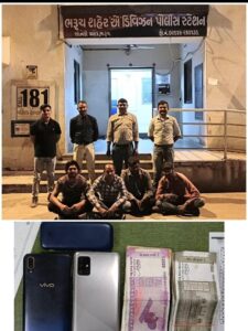 ક્રાઇમ બ્રાંચના દરોડામાં (1) શૈલેષ ભાઈ મગનભાઈ પટેલ રહે, સેલોદ (2) કૃણાલભાઈ ઝીણાભાઈ પટેલ રહે,નાંગલ અંકલેશ્વર (3) રક્ષિતભાઈ છગનભાઇ પટેલ રહે,અવાદર અંકલેશ્વર (4) હિતેશ ભાઈ મોહનભાઇ પટેલ રહે, અવાદર અંકલેશ્વર તેમજ (5) ધવલભાઇ પ્રમોદભાઈ પટેલ રહે, સરદારપુરા ઝઘડિયા નાઓ જુગાર રમતા રંગે હાથ ઝડપાઈ ગયા હતા.