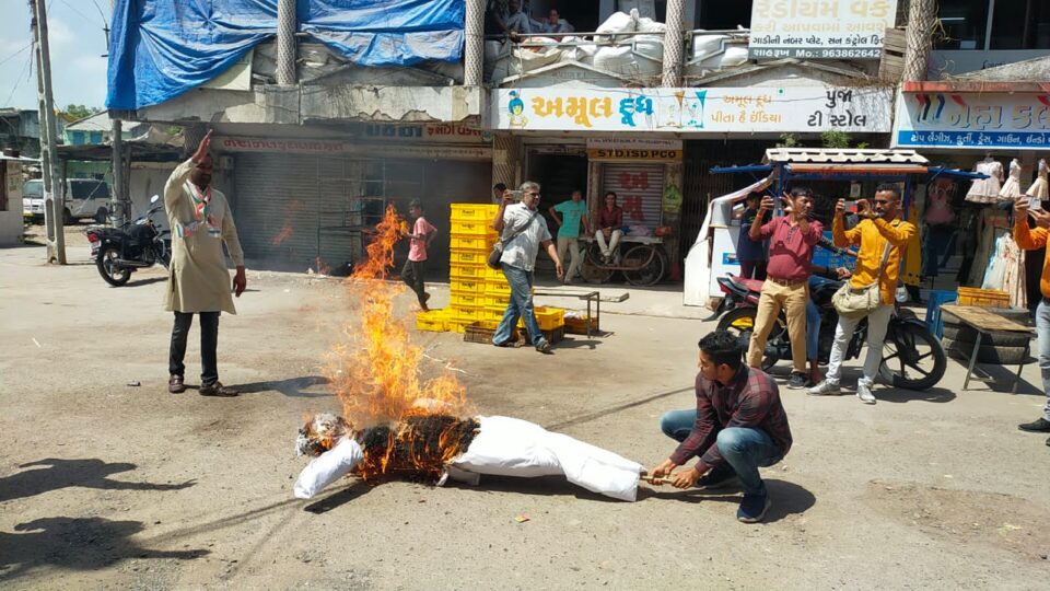 ભરૂચ જિલ્લા અને શહેર કોંગ્રેસ સમિતિના કાર્યકરોએ વર્તમાન મોદી સરકાર વિરોધ સુત્રોચાર કરી પૂતળાનું દહન કરતા એક સમયે પોલીસ સાથે ઘર્ષણ જેવી સ્થિતિનું નિર્માણ થયું હતું, જોકે કોંગી કાર્યકરો પૂતળા દહનમાં સફળ રહ્યા હતા, જે બાદ પોલીસે વિરોધ કરી રહેલા જિલ્લા કોંગ્રેસ પ્રમુખ પરિમલ સિંહ રાણા, શહેર કોંગ્રેસ પ્રમુખ હરીશ પરમાર, ગુજરાત કોંગ્રેસ અગ્રણી સંદીપ માંગરોલા સહિત વિરોધ કરી રહેલા 10 થી વધુ કાર્યકરોની અટકાયત કરી હતી.