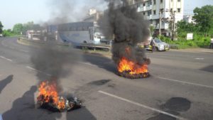 ભારત બંધના એલાનમાં ભરૂચ ના કોંગ્રેસી કાર્યકરોએ શહેરના મુખ્ય માર્ગો પર ટાયરો સળગાવી વિરોધ નોંધાવ્યો તો શહેર ના મોટા ભાગ ના વિસ્તારોમાં દુકાનો ના શટર મોડે સુધી બંધ રહેલા જોવા મળ્યા હતા..તો બીજી તરફ કોંગ્રેસના કાર્યકરો અને પોલીસ વચ્ચે ઘર્ષણ ની સ્થિતિ સર્જાતી જોવા મળી હતી…
