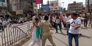 કોંગ્રેસી કાર્યકરોના વિરોધ પ્રદર્શન ભરૂચ શહેર એ ડિવિઝન ડી ડિવિઝન સી ડિવિઝન સહિતની પોલીસ ટીમે દોડી જઇ તાત્કાલિક કોંગ્રેસી કાર્યકરોને રોકવાનો પ્રયાસ કર્યો હતો જોકે વિરોધ પ્રદર્શન કરી રહેલા કાર્યકરોની અટકાયત કરવા જતા કોંગ્રેસી કાર્યકરો અને પોલીસ વચ્ચે ભારે ઘર્ષણ સર્જાયા હતા તો કોંગ્રેસ સમિતિના જિલ્લા પ્રમુખ પરિમલ સિંહને પણ પોલીસને આડે હાથ લેતા એક સમયે વાતાવરણ ગરમાય તેવી સ્થિતિ સર્જાતી જોવા મળી હતી.. જોકે કોંગ્રેસી કાર્યકરો ના વિવિધ માર્ગો પરના ઉગ્ર આંદોલન અને બજારો બંધ કરવા ના મુદ્દે પોલીસે કડક વલણ અપનાવી રેલ્વે સ્ટેશન નજીક કોંગ્રેસી કાર્યકરો ની રેલવે સ્ટેશનની બહાર થી જ અટકાયત કરતા ખળભળાટ મચ્યો હતો…