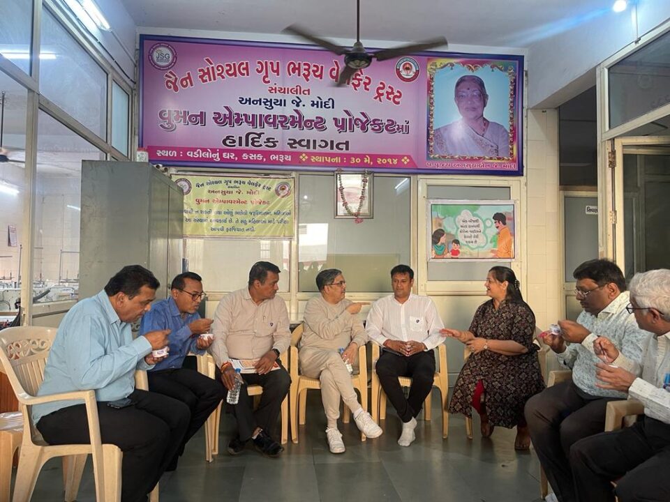 આજરોજ જૈન સોશ્યલ ગૃપ ઇન્ટરનેશનલ ફેડરેશન પ્રેસીડેન્ટ અમીષ દોશી છેક ચેન્નાઇથી, ભરુચના ઘરડા ઘર ખાતે આવેલ અનસુયા જે મોદી વુમન એમ્પાવરમેન્ટ સેન્ટરની મુલાકાતે આવ્યા હતા કે જ્યાં જૈન સોશ્યલ ગૃપ ભરૂચ દ્વારા જરુરિયાતમંદ, વંચિત બહેનોને જુદી જુદી વોક્શનલ ટ્રેનિંગ જેમ કે, બ્યુટી પાર્લર, કોમ્પ્યુટર બેઝીક+ટેલી, ફેશન ડિઝાઇનીંગ બેઝીક + એડવાન્સ અને ટાટા ઇન્સ્ટીચ્યુટ ઓફ સોશ્યલ સાયન્સીસ સાથે કોલાબરેશનમાં જેરીયાટ્રીક કેરનો ડિપ્લોમા વગેરેની વિના મુલ્યે તાલીમ આપી તેઓને પગભર થવામાં મદદરૂપ થઇ તેમનું તથા તેમના પરિવારનું જીવનધોરણ ઉંચુ લાવવાનો પ્રયત્ન કરવામાં આવે છે. છેલ્લા નવ વર્ષથી ચાલતા આ વુમન એમ્પાવરમેન્ટ પ્રોજેક્ટમાં અત્યાર સુધીમાં ૩૧૨૦ જેટલી જરુરિયાત મંદ બહેનોને તાલીમ આપવામાં આવી છે. સેન્ટરની પ્રવૃત્તિથી ઇન્ટરનેશનલ ફેડરેશન પ્રેસીડેન્ટ અમીષ ભાઇ ખુબ જ પ્રભાવિત થયા હતા અને જેએસજી ભરૂચને જેએસજી ઇન્ટરનેશનલ ફેડરેશન તરફથી ₹ ૫૧,૦૦૦/- જેટલી માતબર રકમનું દાન જાહેર કરેલ હતું. ઇન્ટરનેશનલ ફેડરેશનના સેક્રેટરી જનરલ ચિરાગ ચોકસી, પીઆરઓ એડમિન મનિષ શાહ, રિજીયન ચેરમેન બી કે શાહ, રિજીયન ઇમી. ફોર્મર ચેરમેન મયુર શાહ સાથે ભરુચ ગૃપના અન્ય પદાધિકારીઓ પણ હાજર રહ્યા હતા. જૈન સોશ્યલ ગૃપના પ્રેસીડેન્ટ કેતકી મહેતાએ જણાવ્યું કે તેમના બે વર્ષના ટેન્યોર દરમ્યાન ભરુચ શહેર અને જિલ્લાની જરુરિયાતમંદ જનતાના લાભાર્થે અન્ય પરમેનન્ટ પ્રોજેક્ટ શરૂ કરવાની આકાંક્ષા છે.