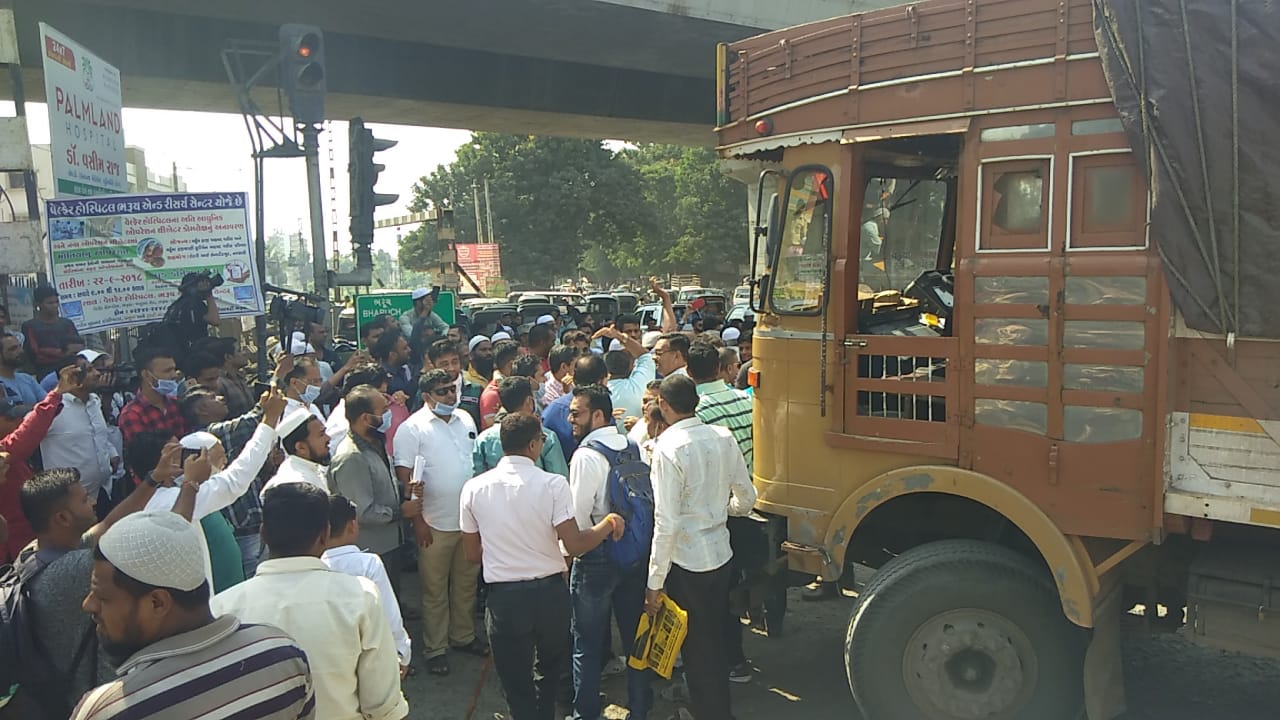ભરૂચ ના બાયપાસ ચોકડી પર સ્થાનિકોનો ચક્કાજામ યોજાયો હતો-ખરાબ માર્ગ ના કારણે લોકો રસ્તા પર ઉતરી આવી ચોકડી પર ના તમામ વાહનોને અટકાવી ભારે સુત્રોચાર સાથે વિરોધ પ્રદર્શન કર્યું હતું….