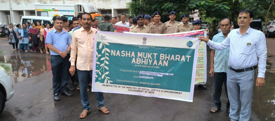 ભરૂચ જિલ્લામાં આંતરરાષ્ટ્રીય માદક દ્રવ્ય નિષેધ દિવસના ભાગરૂપે જનજાગૃત્તિ અર્થે રેલી યોજાઈ