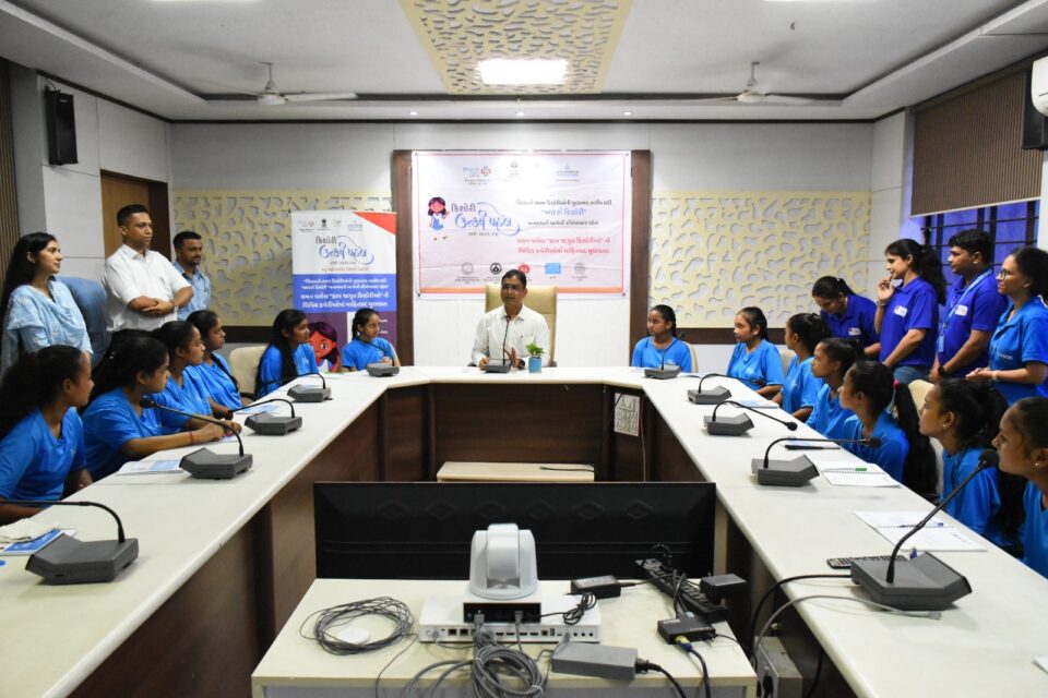 ૩) જિલ્લા બાળ સુરક્ષા એકમ દ્રારા સંચાલિત ચિલ્ડ્રનહોમ ફોર ગર્લ્સ: જિલ્લા બાળ સુરક્ષા અધિકારી દ્રારા તમામ “ગ્રામ જાગૃત કિશોરીઓ” ને આવકારીને ચિલ્ડ્રનહોમ ફોર ગર્લ્સમાં મળતી સુવિધાઓ, બાળ કલ્યાણ સમિતિ અને જ્યુવેનાઇલ જસ્ટિસ બોર્ડની ભૂમિકા, CARAવેબસાઇટ, અડોપ્શન એજન્સી વગેરે અંગેની વિસ્તૃત માહિતી આપી હતી. આ સત્રમાં, અનેક કિશોરીઓએ અધિકારી સમક્ષ સક્રિયપણે પ્રશ્નોતરી કરી બાળ સુરક્ષા અને બાળ કલ્યાણ અંગેનું અધિક જ્ઞાન મેળવ્યું હતું.