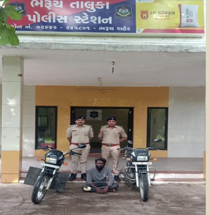 ભરૂચ રૂરલ પોલીસ મથકના કર્મીઓ ચોરીના વાહનો અંગેની તપાસમાં હતા તે દરમ્યાન મળેલ બાતમીના આધારે કેસરોલથી નવેઠા ચોકડી તરફના માર્ગ ઉપર સ્પેલેન્ડર મોટર સાયકલ નંબર GJ 16 ED 5238 ના ચાલક ને રોકી તેની પાસે રહેલ મોટરસાયકલ વિશે વિગત વાર પૂછતાં જ કરતા તેણે મહેગામથી મોટર સાયકલની ચોરી કરી હોવાનું તપાસમાં સામે આવ્યું હતું.