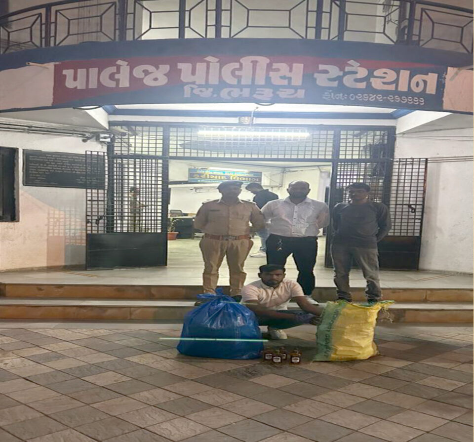 પાલેજ પોલીસ ટીમ બાતમીવાળી જગ્યા ઉપર વૉચ રાખતા એક્ટીવા આવતાં એક્ટીવા ચાલકને સાઈડમાં ઉભી રખાવી જોતાં એક્ટીવામાં પગ મુકવાની જગ્યાએ વાદળી કલરની પ્લાસ્ટીકની બેગ તેમજ સીટ ઉપર પાછળનાં ભાગે દોરીથી બાંધેલ મીણીયા થેલામાં વિદેશી દારૂનો જથ્થો મળી આવ્યો હતો. જેથી પાલેજ પોલીસે પ્લાસ્ટીકનાં ક્વાટર નંગ-૨૮૮ કિં.રૂ.ર૮,૮૦૦/- નો મુદ્દામાલ સાથે આરોપી સંદિપકુમાર ચંદ્રભુવન નિષાદ જાતે હિન્દુ ઉ.વ.ર૬ ધંધો-મજુરી રહેવાસી-વરાછા, લક્ષ્મણનગર સોસાયટી,તા.જી.સુરત મુળ રહેવાસી, ગામ છતોના કલા, તાલુકો, લંભુઆ, જીલ્લો, સુલ્તાનપુર ઉત્તર પ્રદેશની અટક કરી તથા તેની અંગ ઝડતીમાંથી રોકડા રૂપિયા પર૦/- તથા અલગ અલગ કંપનીનાં મોબાઈલ નંગ-ર કિં.રૂ.૩૫૦૦/- તથા એક્ટીવા કિં.રૂ.ર૦,૦૦૦/- ગણી કુલ્લે કિં.રૂ. પર,૮૨ર૦/- નાં મત્તાનાં મુદ્દામાલ સાથે સ્થળ પર પકડી પાડી ઝડપાયેલ આરોપી વિરૂધ પ્રોહી એક્ટ કલમ મુજબ કાયદેસર કાર્યવાહી કરવામાં આવેલ છે.જયારે આ ગુનામાં પોલીસે મીનાબેન મહેશભાઈ માછી રહે, પાલેજ ડુંગરીપાળ તા.જી.ભરૂચને વોન્ટેડ જાહેર કરી વધુ તપાસ હાથધરી છે.