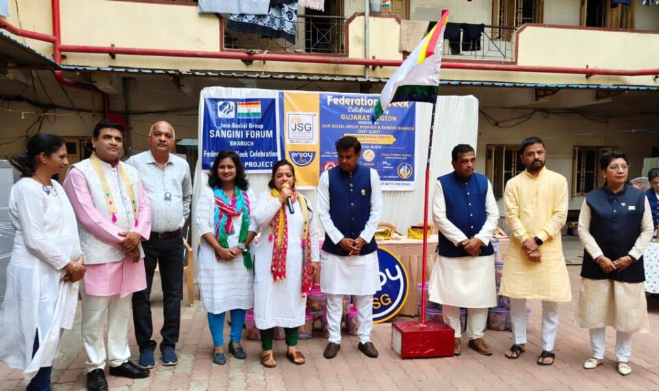 જેએસજી ઇન્ટરનેશનલ ફેડરેશન ગુજરાત રીજીયનના ઉપક્રમે ફેડરેશનના સેવાકીય સપ્તાહની ઉજવણીના ભાગ રૂપે જૈન સોશિયલ ગૃપ ભરૂચના પ્રમુખ કેતકી મહેતા અને અને સંગીની પ્રમુખ નેહા શાહના નેતૃત્વમાં તા.૧૩ ના રોજ ભરુચના વડીલોના ઘર ખાતે સેવાકીય કાર્યક્રમોનું આયોજન આમંત્રિત મહાનુભાવો, જેએસજી- સંગીની સભ્યો, ઘરડાઘરમાં વસતા વડીલો, મહેમાનો અને જેએસજી સભ્યોની બહોળી ઉપસ્થિતિમાં કરવામાં આવ્યું હતું. તેમાં અતિથિ વિશેષ તરીકે ભરૂચ નગરપાલિકાના પ્રમુખ અમિતભાઈ ચાવડા તથા ઇન્ટરનેશનલ ફેડરેશનના મહાસચિવ ચિરાગ ચોકસી, ઇન્ટરનેશનલ ડાયરેક્ટર કિરણ બેન જૈન, સાથે ચેરમેન ગુજરાત રિજીયન ભરતભાઈ શાહ સાથે રિજીયન વાઇસ ચેરમેન દીપક સુરાના, ઝોન કોઓર્ડિનેટર પંકજ મહેતા વગેરે મહાનુભાવો ઉપસ્થિત રહ્યા હતા. કાર્યક્રમમાં વડીલોની જરૂરિયાતને સમજી સ્ટીલની તિજોરીઓ તથા ઉપયોગી પ્લાસ્ટિક કન્ટેનરમાં વડીલો ખાઇ શકે તેવો નાસ્તો તથા માવા ચીક્કીનું વિતરણ દરેક વડીલને જેએસજી ભરૂચ તથા સંગીની ભરૂચ ગ્રુપ તરફથી કરવામાં આવ્યું. સાથે સાથે બેટી બચાઓ બેટી પઢાઓના વિવિધ સ્લોગન સાથેની રેલીનું આયોજન કસક સર્કલ તથા શીતલ સર્કલ વિસ્તારમાં કરવામાં આવ્યું હતુ. ઉપરાંત જેએસજી ઇન્ટરનેશનલ ફેડરેશનનું ફ્લેગ હોસ્ટિંગ, જેએસજી થીમ સોંગના સથવારે કરવામાં આવ્યું હતુ. આ વિવિધ કાર્યક્રમોને સફળતા અપાવવા ઇવેન્ટ ચેરમેન સ્નેહલતા શાહે જહેમત ઉઠાવી હતી.