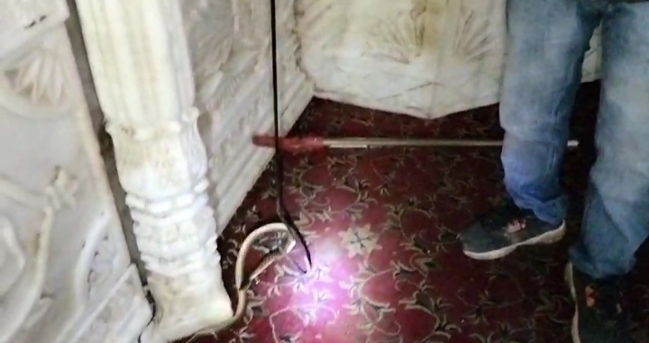 ભરૂચની નર્મદા નદીમાં પુર આવતાં આસપાસના વિસ્તારોમાં ઠેર ઠેર પાણી ભરાયા હતાં. ભરૂચના ઝુલેલાલ મંદિરમાં પણ પાણી ભરાઈ ગયું હોય પૂરના પાણી ઓસરતા મંદિરમાં સાપ દેખાતા પ્રકૃતિ પ્રેમીઓએ સાપનું રેસ્ક્યુ કર્યું હતું.