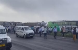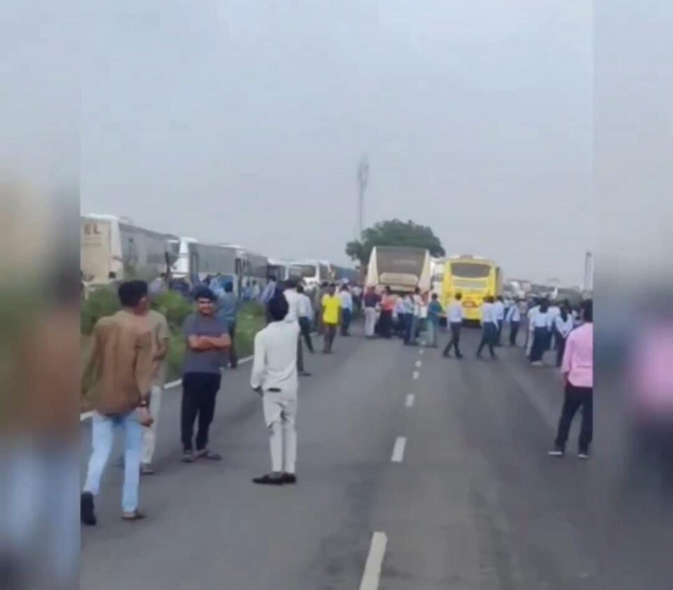 ભરૂચ અને દહેજને જોડતા રાજ્ય ધોરી માર્ગ ઉપર આજે સવારે ટોલનાકા નજીક એકા એક સ્થાનિકો અને વાહન ચાલકો દ્વારા ચક્કજામ કરી વિરોધ પ્રદશન કરવામાં આવતા તંત્રમાં દોડધામ મચી હતી,આ દરમ્યાન કલાક ઉપરાંત જામમાં વાહનોના પૈડાં થંભી ગયા હતા.