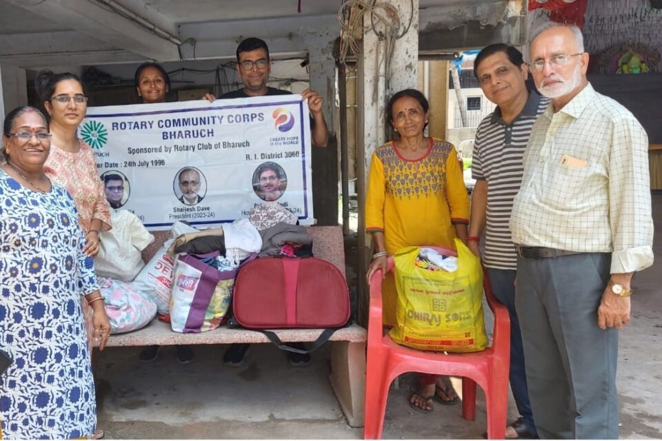 RCC પ્રેસિડેન્ટ શૈલેષ દવેના નેતૃત્વ હેઠળ પૂરગ્રસ્ત વિસ્તાર પુષ્પાબાગ ખાતે બટુકનાથ વ્યાયામ શાળાની વસ્તીમાં રહેતા 300 જેટલા અસરગ્રસ્ત પરિવારના લોકોને ફૂડ પેકેટ આપવામાં આવ્યા હતા તેમજ અંકલેશ્વર જુના દીવા ખાતેની વસ્તીમાં રહેતા અસરગ્રસ્ત પરિવારોને ફૂડ પેકેટ તથા કપડા વિતરણ કરવામાં આવ્યું હતું, જેમાં RCC પ્રેસિડેન્ટ શૈલેષ દવે, RCC સેક્રેટરી મૃણાલ કાપડિઆ, વોર્ડના કાઉન્સિલર ચિરાગભાઈ ભટ્ટ, બ્રહ્મ સમાજના ઉપપ્રમુખ જયેન્દ્રભાઈ ભટ્ટ, RCC પાસ્ટ પ્રેસિડેન્ટ્સ, RCC સભ્યો હાજર રહીને અસરગ્રસ્ત પરિવારને સાંત્વના આપી હતી.