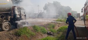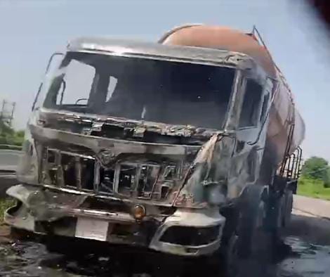 ભરૂચ જિલ્લામાંથી પસાર થતા રાષ્ટ્રીય ધોરીમાર્ગ નંબર ૪૮ પર વડોદરા જિલ્લાના સરહદી ગામ હલદરવા નજીક આવેલી એક હોટલના કમ્પાઉન્ડમાં પાર્ક કરેલી લિકવિડ ભરેલી એક ટ્રકમાં કોઇ કારણોસર આગ લાગતા અફરાતફરી સાથે દોડધામ મચી જવા પામી હતી. ટ્રકમાં આગ લાગતા ધુમાડાના ગોટેગોટા આકાશ તરફ ઉંચે ચડતા લોકોના જીવ તાળવે ચોંટી ગયા હતા.