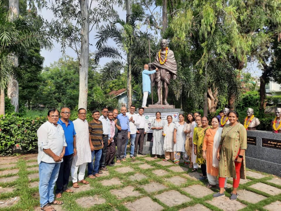 આજે મહાત્મા ગાંધીજીની જન્મ જયંતી નિમિત્તે ભરૂચનાં સેવાશ્રમ કમ્પાઉન્ડમાં આવેલ ગાંધી વિશ્રામ આશ્રમ ખાતે આર.સી સી ના સભ્યો દ્વારા ગાંધીજીની પ્રતિમાને સુતરની આંટી ફૂલહાર અર્પણ કરવાનો કાર્યક્રમ યોજાયો હતો.