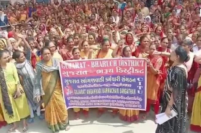 મુખ્યમંત્રી ભુપેન્દ્ર પટેલને સંબોધીને ભરૂચ જિલ્લા કલેકટર કચેરી ખાતે એક આવેદન પત્ર ગુજરાત આંગણવાડી કર્મચારી સંગઠનના નેજા હેઠળ ભરૂચ જિલ્લાની આંગણવાડી વર્કર-હેલ્પર બહેનોએ પાઠવ્યું હતું જેમાં જણાવ્યા અનુસાર આંગણવાડી બહેનોએ માનદ વેતન પગાર અને છેલ્લા ઘણા સમયથી બાળકો, સગર્ભા ધાત્રી, કિશોરીઓના લાભાર્થીઓ માટે પોતાના વેતનમાંથી ખર્ચ કરેલ નાસ્તાના રૂપિયાના બિલો મૂકવામાં આવ્યા છે જે આજદિન સુધી ચૂકવવામાં આવ્યા નથી તેવા આક્ષેપ કરવામાં આવ્યા છે સાથે અન્ય વિવિધ પડતર માંગણીઓ મુદ્દે અગાઉ સમાધાનના અમલના પ્રશ્નો અંગે બેઠક યોજી તેનો ઉકેલ લાવવા માંગણી કરવામાં આવી છે અને જો દસ દિવસમાં બેઠક બોલાવી તેઓના પ્રશ્નોનુ નિરાકરણ નહીં કરવામાં આવે તો પંદર દિવસ બાદ આંગણવાડી કેન્દ્રોને તાળાબંધી કરવાની ચીમકી ઉચ્ચારવામાં આવી છે.
