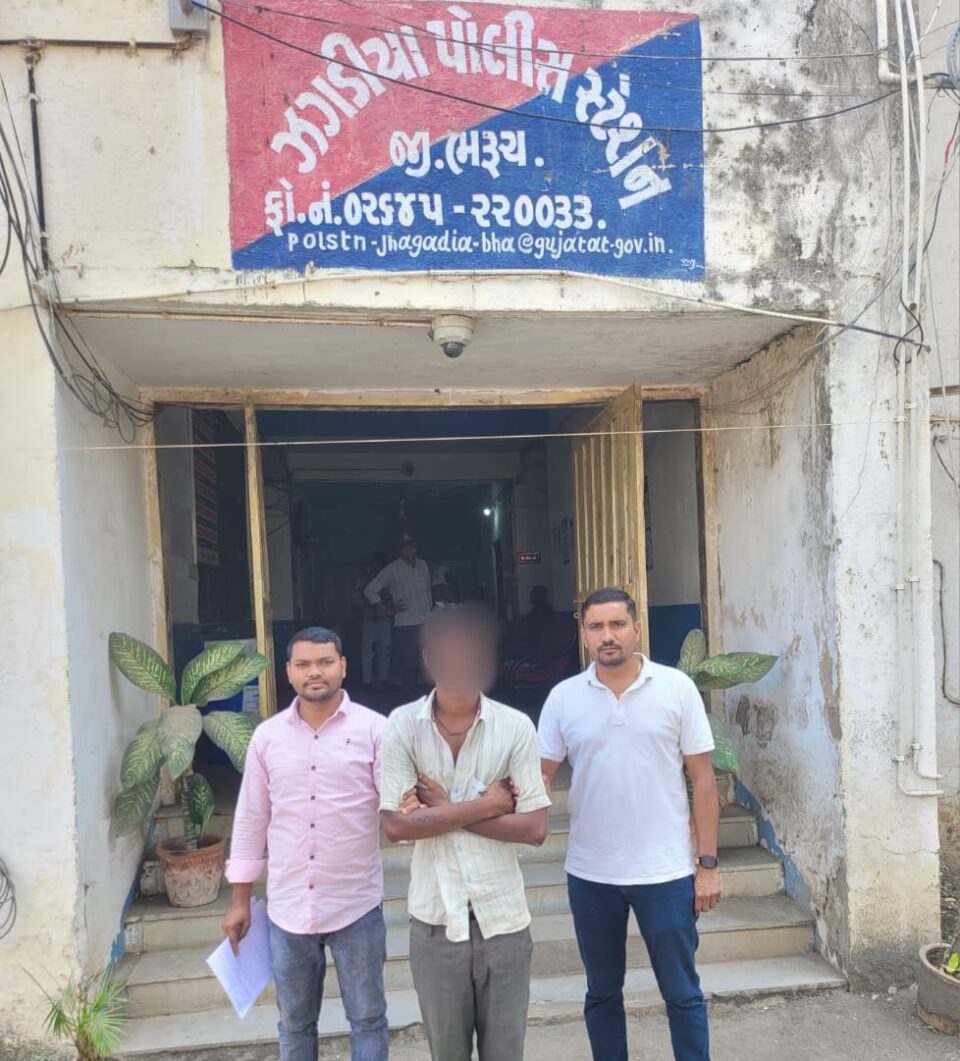 ભરૂચમાં નાસતા ફરતા આરોપીઓને ઝડપી પાડવા પો.સબ.ઇન્સપેકટર વી.એ.રાણાની સૂચનાના આધારે પેરોલ ફ્લો સ્કોડ ભરૂચની ટીમ પેટ્રોલિંગમા હતી તે સમયે બાતમી મળેલ કે ઝઘડિયા પોલીસ સ્ટેશનમાં નોંધાયેલ ગુનાનો આરોપી નાસતો ફરતો હોય જેનું નામ અલ્પેશ ઉર્ફે ચકલી દિપીલભાઇ મંગાભાઈ વસાવા ઉં.વ.26 ધંધો મજૂરી રહે. ગુમાનપુરા ટેકરા ફળિયું તા.ઝઘડિયા જી. ભરૂચને જે ફૂલવાડી ગામે કલર કામ કરતો હોય તેને ભરૂચ પેરોલ ફ્લો સ્કોડે તપાસ કરતાં ફૂલવાડી ગામે હાજર મળતા આરોપીને હસ્તગત કરી આગળની કાર્યવાહી કરવા માટે ઝઘડિયા પો.સ્ટેશન ખાતે સુપ્રત કરવામાં આવેલ છે.
