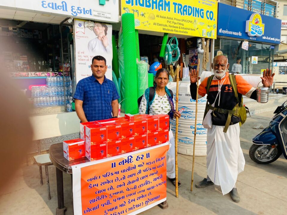 ભરૂચ ઝાડેશ્વર ચોકડી પર થી પસાર થતા નર્મદા પરિક્રમા વાસીઓને મેડિકલ સુવિધાઓ દવાઓ નું વિતરણ કરાઈ રહ્યું છે હાલ ખૂબ જ મોટી સંખ્યામાં નર્મદા પરિક્રમા વાસીઓ ઊમતી રહ્યા છે ત્યારે થેર થેર નર્મદા પરિક્રમા વાસીઓ માટે જમવાની નાસ્તા ની રહેવાની સુવિધાઓ ઊભી થઈ રહી છે ત્યારે આવા સમયે સૌથી વધુ જરૂર હોય તો નર્મદા પરિક્રમા વાસીઓને દવાની ત્યારે તેઓને છેલ્લા કેટલાક સમયથી ઝાડેશ્વર ચોકડી ઉપર આવેલા જનતા મેડિકલ ના માલિક સુરેશભાઈ દ્વારા છેલ્લા કેટલાક સમયથી ઝાડેશ્વર ચોકડીથી પસાર થતા તમામ નર્મદા પરિક્રમા વાસીઓ માટે દવાઓનું વિતરણ કરવામાં આવી રહ્યું છે જેઓને શરીરના દુખાવો શરદી ખાંસી પગના દુખાવો ઘુટણ ના દુખાવા સહિતની દવાઓ તે છેલ્લા કેટલાક સમયથી વિના મૂલ્ય વિતરણ કરી રહ્યા છે