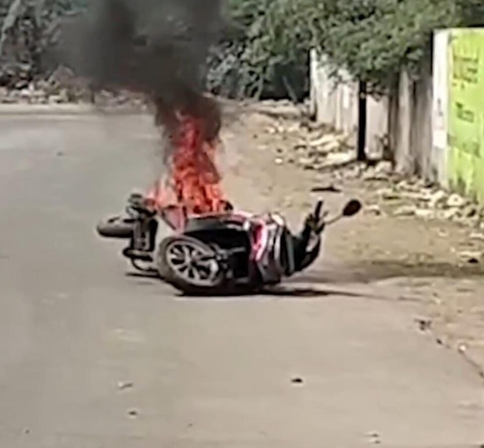 જ્યાં સવાર ના સમયે રસ્તા વચ્ચે જ એક ઇલેક્ટ્રિક મોપેડ ભડકે બળતી નજરે પડી હતી, જે બાદ સ્થાનિકોએ ફાયર ને જાણ કરતા ફાયર ના લાશકરો એ આગ પર કાબુ મેળવ્યો હતો,ઘટના માં સદનસીબે કોઇ જાનહાની થવા પામી ન હતી, જોકે આ આગ શોર્ટ સર્કિટ ના કારણે લાગી હોવાનું પ્રાથમિક અનુમાન લગાવાઈ રહ્યું છે