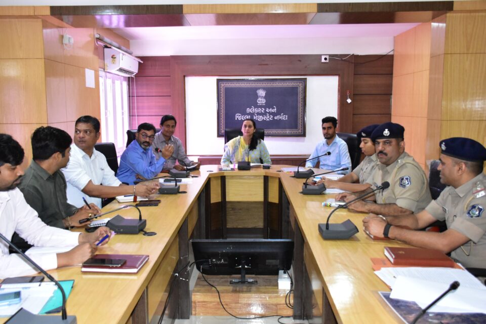 રાજપીપલા, ગુરૂવાર :– નર્મદા જિલ્લા કલેક્ટર શ્રીમતી શ્વેતા તેવતિયાની અધ્યક્ષતામાં કલેક્ટર કચેરીના સભાખંડ ખાતે આગામી તા.૮મીથી ૧૨મી માર્ચ-૨૦૨૪ દરમિયાન સાગબારા તાલુકાના દેવમોગરા ખાતે મહા શિવરાત્રિના પાવન પર્વે આદિવાસી સમાજના આસ્થા અને શ્રદ્ધાના કેન્દ્ર સમા કુળદેવી યાહા મોગી પાંડોરી માતાજીના મેળાના આયોજન સંદર્ભે બેઠક યોજાઈ હતી. પરંપરાગત ભાતીગળ મેળાની થનારી આ ભવ્ય ઉજવણીના સુચારૂ આયોજન અંગે તમામ પ્રકારની વ્યવસ્થાના ભાગરૂપે સંબંધિત વિભાગોને સોંપાયેલી ફરજો અને જવાબદારીઓ સુપેરે નિભાવી મેળામાં આવતા યાત્રિકોને કોઈપણ જાતની અગવડ ન પડે તે જોવા જિલ્લા કલેક્ટરશ્રીએ ખાસ અનુરોધ કર્યો હતો.
