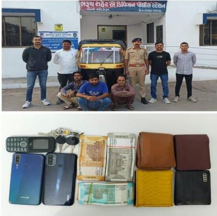 ભરૂચ શહેર ના અલગ અલગ વિસ્તારમાં રીક્ષા લઈ ફરતા અને રાહદારીઓને રિક્ષામાં બેસાડી તેઓ પાસેથી રૂપિયા અને પાકીટ જેવી વસ્તુઓની ચોરી કરતા ત્રણ જેટલા ઈસમો આખરે ભરૂચ શહેર એ ડિવિઝન પોલીસ ની પકડ માં આવી પહોંચ્યા હતા