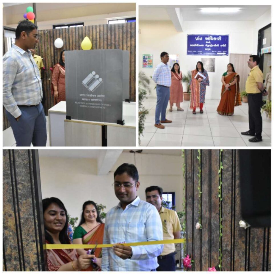 ભરૂચ કલેક્ટર કચેરી ખાતે આદર્શ ઉદાહરણરૂપ મતદાનમથકનું ઉદ્ધાટન કરતા જિલ્લા ચૂંટણી અધિકારી અને જિલ્લા કલેક્ટર તુષાર સુમેરા*