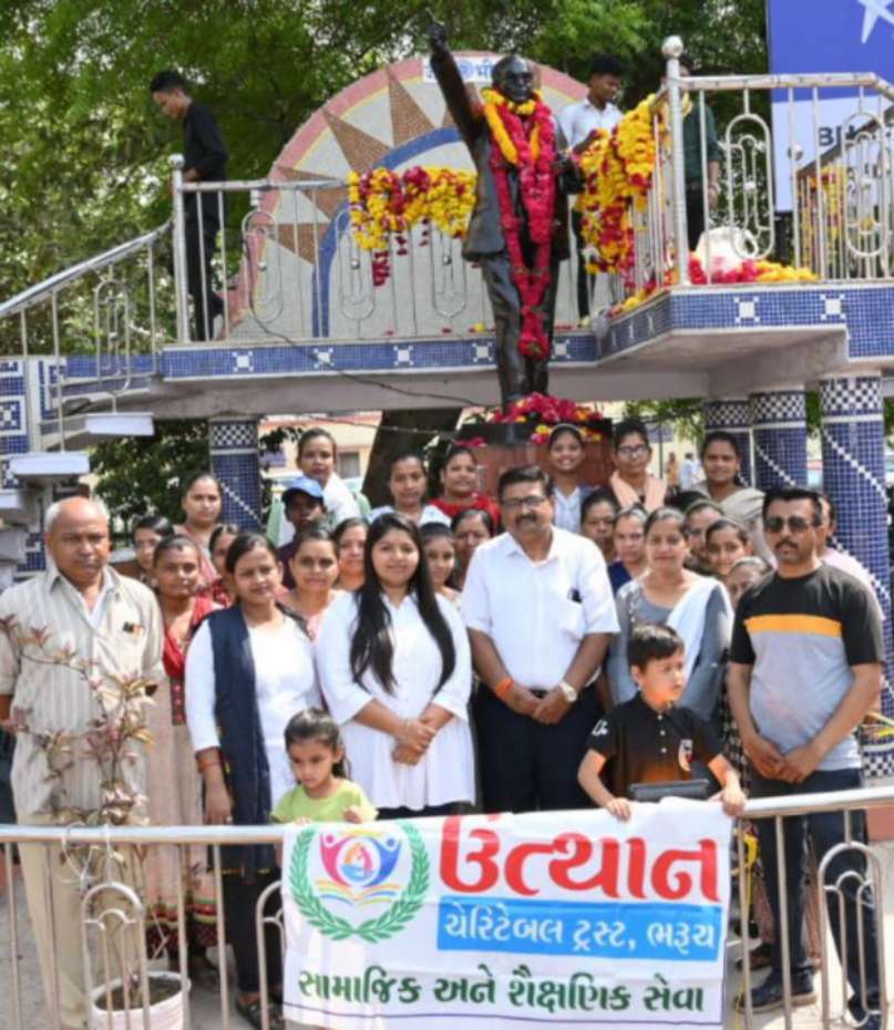 ભારત દેશના બંધારણના ઘડવૈયા, વિશ્વવિભૂતિ ,મહિલાઓના મુક્તિદાતા એવા ડો.ભીમરાવ આંબેડકર ની 133મી જન્મ જયંતી નિમિત્તે ઉત્થાન ચેરીટેબલ ટ્રસ્ટ દ્વારા ભરૂચ રેલવે સ્ટેશન ખાતે બાબા સાહેબ ની પ્રતિમાને ફુલહાર તેમજ શ્રદ્ધાસુમન અર્પણ નો કાર્યક્રમ રાખવામાં આવ્યો હતો .ઉપસ્થિત સંસ્થાના તમામ બહેનો તેમજ ભાઈઓએ બાબાસાહેબના કાર્યો તેમજ મહિલા ઉત્થાનના કાર્યોને યાદ કરી શ્રદ્ધાંજલિ અર્પણ કરી હતી .આ કાર્યક્રમમાં સંસ્થાના પ્રમુખ પરેશ મેવાડા ,ઈશા મેવાડા ,વૈશાલી ચંદેલ ,અમિતા રાણા , હિતેશ મેવાડા,જશોદાબેન પ્રજાપતિ ,ચંદ્રિકાબેન પરમાર ,છાયાબેન પંડ્યા ,શીતલ વસાવા, ચંદ્રિકા મોરિયા ,મનોજ ગડેરીયા શૈલેષ પરમાર વગેરે ઉપસ્થિત રહી ડોક્ટર બાબા સાહેબ આંબેડકરને શ્રદ્ધા સુમન અર્પણ કર્યા હતા.