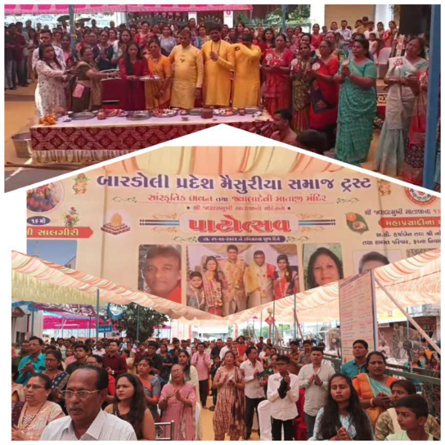 સુરતના બારડોલી ખાતે જ્વાળાદેવી માતાનો 16માં પાટોત્સવ ની ભવ્ય ઉજવણી કરાઈ :મેસુરીયા સમાજના આગેવાનો મોટી સંખ્યામાં હાજરી આપી
