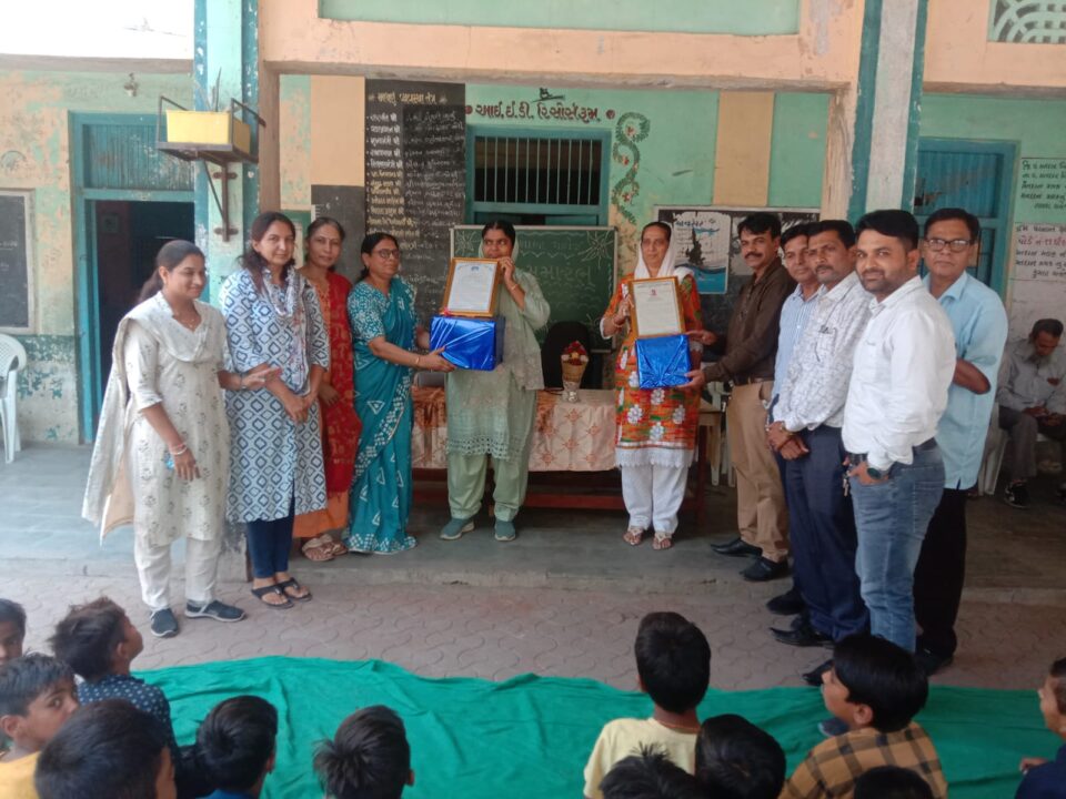 હવે પછીનું જીવન સુખ શાન્તિ અને તદુરસ્ત રીતે પસાર થાય એવી શુભેચ્છાઓ પાઠવી હતી. શાળા પરીવાર તરફથી સન્માન પત્ર અને ગિફ્ટ અર્પણ કરવામાં આવી હતી. ઉપસ્થિત કન્યાશાળા તથા નવી નગરી શાળાના આચાર્યશ્રીઓ દ્વારા પણ વયનિવૃત થતા શિક્ષિકાઓને ભેટ આપવામાં આવી હતી. અંતમાં વયનિવૃત થતા બન્ને શિક્ષિકાઓએ સાથ સહકાર આપવા બદલ સર્વેનો આભાર વ્યક્ત કર્યો હતો અને ફરજ દરમ્યાન કોઈનું દિલ દુઃખાયું હોય તો માફી માંગી હતી. અંતમાં સમૂહ ભોજન લઈ કાર્યક્રમની પુર્ણાહુતી કરવામાં આવી હતી…