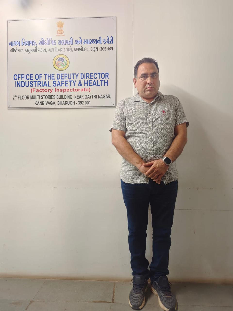આ કામનાં ફરીયાદીએ નાયબ નિયામક ઔદ્યોગિક સલામતી અને સ્વાસ્થ્યની કચેરી, ભરૂચ ખાતે નવી ફેક્ટરી ખોલવા માટે પ્લાનનાં નકશા મંજુર કરવા જરૂરી દસ્તાવેજો સાથે પ્રફોર્મા મુજબ અરજી કરી હતી. જે અરજીમાં આક્ષેપિતે ક્વેરી કાઢવામાં આવી હોય ક્વેરી સોલ્વ કરી આગળની કાર્યવાહી કરવાના માટે રૂ.1,25,000 ની માંગણી મદદનીશ નિયામક ઔદ્યોગિક સલામતી અને સ્વાસ્થ્યની કચેરી,ભરૂચ, વર્ગ-૨ના અધિકારી જીગર જગદીશચંદ્ર પટેલે ફરીયાદી પાસે કરી હતી.