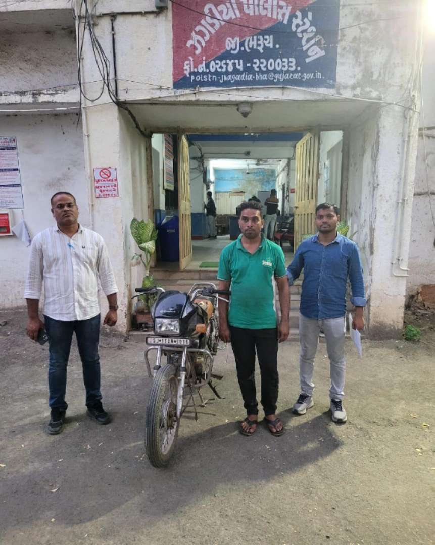 ભરૂચ SOG પોલીસે ઝઘડિયા વિસ્તારમાંથી શંકાસ્પદ મોટર સાયકલ લઇને જઇ રહેલા એક ઇસમને ઝડપી પાડયો હતો. પોલીસ સુત્રોમાંથી પ્રાપ્ત માહિતી અનુસાર પોલીસ અધિક્ષક મયુર ચાવડા ભરૂચનાઓની સુચના અને માર્ગદર્શન આધારે SOG પો.ઇન્સ.શ્રી એ.એ.ચૌધરી નાઓએ મિલકત સબંધી ગુનાઓ અટકાવવા તથા વણશોધાયેલ વાહન ચોરીના ગુના શોધી કાઢવા તથા એ.ટી.એસ. ચાર્ટર મુજબની કામગીરી કરવા પોતાની ટીમને કાર્યરત કરતા એસ.ઓ.જી. ટીમ ઝઘડીયા વિસ્તારમા પેટ્રોલીંગમાં હતા. દરમ્યાન એક શંકાસ્પદ મોટર સાયકલ નં- GJ-16-AN-3016 ચેક કરતા શંકાસ્પદ હાલતમાં ઝડપાયેલા ઇસમ ઇરફાન સુભાન શેખ રહે.ઝઘડિયા નાઓ પાસે ખરીદ બીલ કે આધાર પુરાવા માંગતા તેને સંતોષકારક જવાબ નહી આપતા મોટર સાયકલ છળકપટ અથવા ચોરીથી મેળવેલ હોવાનુ પોલીસને જણાઇ આવ્યું હતું. પોલીસે સી.આર.પી.સી. કલમ ૧૦૨ મુજબ મોટર સાયકલ કબ્જે કરી ઇરફાનની સી.આર.પી.સી. કલમ ૪૧(૧) ડી મુજબ અટક કરી આગળની શ્રી મીન હાલમ ૪૧(૧) શ્રી મુજબ કાયદેસર કાર્યવાહી હાથ ધરવામાં આવેલ છે. પોલીસે કિ. રૂ. ૨૦,૦૦૦/- નો મુદ્દામાલ કબજે કર્યો છે…