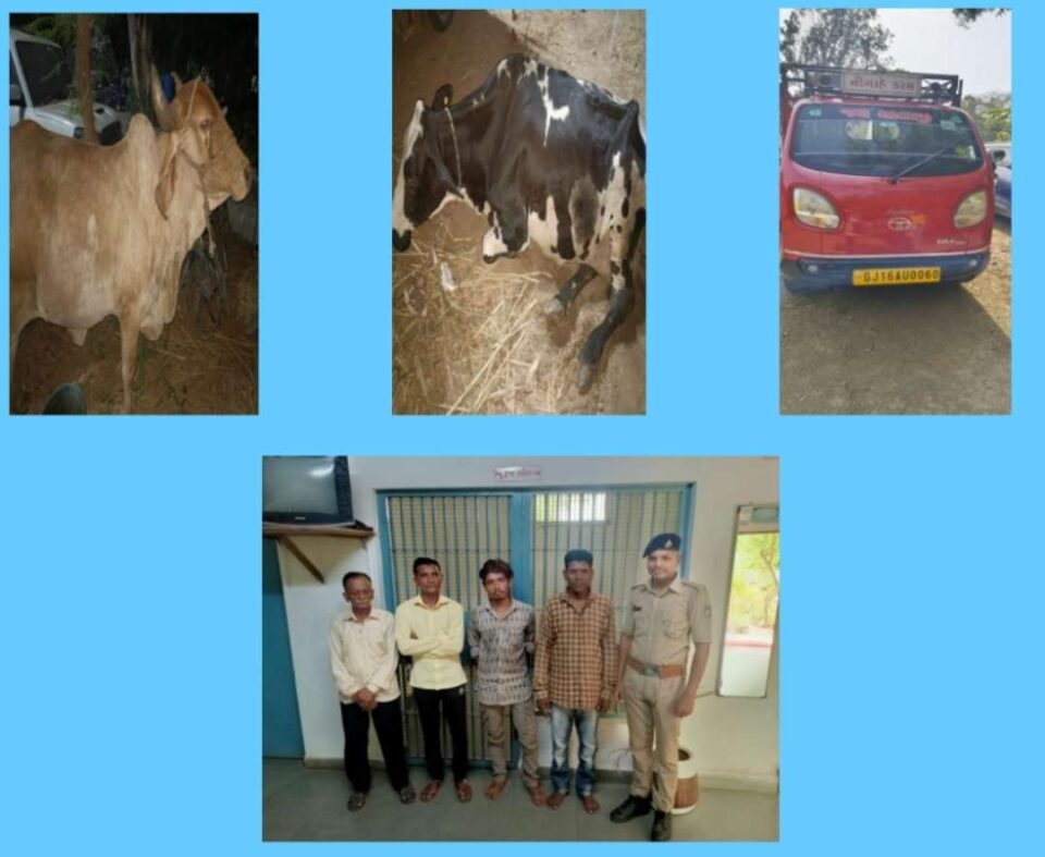 ગૌવંશને અતિકૃરતા પુર્વક ટુકી દોરી વડે બાંધી તેઓને ખાવા માટે કોઇ ઘાસ ચારો કે પાણીની વ્યવસ્થા ન રાખી તથા પશુ હેરાફેરી કરવા માટેની પાસ પરમીટ વગર પશુઓની હેરાફેરી કરી રહ્યા હોઈ ટેમ્પોમાં ભરેલ ગાયો નંગ-૦૨ જેમાં એક કાળા તથા સફેદ કલરના પટ્ટાવાળી જર્સી ગાય છે. જે ગાયની કિંમત આશરે રૂ. ૫,૦૦૦/- તથા બીજી ગાય લાલ કલરની ગીર ગાય છે. જેની કીમત રૂપીયા ૫,૦૦૦/- ગણી કુલ-૦૨ ગાયોની આશરે કિંમત ૧૦,૦૦૦/- ગણી તથા ઉપરોક્ત ટાટા ACE જીપટેમ્પો નંબર GJ-16-AU-0060 જેની આશરે કિ.રૂ. ૫૦,૦૦૦/- તથા આરોપીઓની અંગ ઝડતી કરતા સાદો મોબાઈલ ફોન જેની આશરે ક્રીમત રૂપીયા ૫૦૦/- તથા રોકડા રૂપીયા ૫,૨૦૦/- તથા એક એંડ્રોઈડ ફોન જેની આશરે કીમત રૂપીયા ૫૦૦૦/- મળી તમામ મુદ્દામાલ કુલ કિ.રૂ ૭૦,૭૦૦/- નો મુદ્દામાલ પોલીસે કબજે કરી ભિખાભાઈ ત્રીભોવનભાઈ વસાવા, મહેશભાઈ રાયસિંગભાઇ વસાવા બન્ને રહે- ટંકારીયા, ઈમરાન યુનુસભાઈ દીવાન, વિજયસિંહ ખુમાનસિંહ રાજ બન્ને રહે. ઓરા ગામની ધરપકડ કરી જ્યારે અલ્તાફભાઈ યુનુસભાઈ બાબરીયા રહે. ટંકારીયા નાને વોન્ટેડ જાહેર કરી ચારેય આરોપીઓ વિરુધ્ધ પશુ સંરક્ષક સુધારા અધિનિયમ હેઠળ ગુનો નોંધી વધુ તપાસ હાથ ધરી છે…