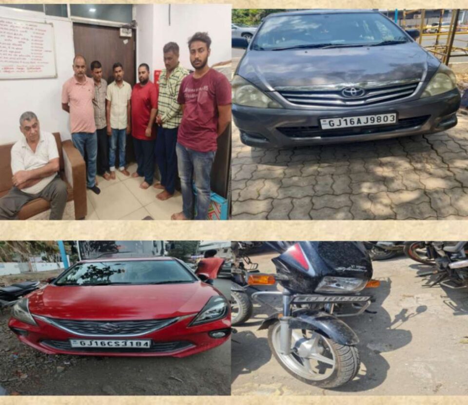 ભરૂચ જિલ્લામાં દારૂ જુગારની પ્રોહિબિટેડ પ્રવૃત્તિઓને ડામવા માટે પોલીસ અધિક્ષક ની સૂચના અનુસાર અંકલેશ્વર વિસ્તારમાં આ પ્રકારની પ્રવૃત્તિઓ પર રોગ લગાવવા માટે અંકલેશ્વર જીઆઇડીસી પોલીસ પેટ્રોલિંગમાં હતી તે સમયે બાદતમીદારો દ્વારા બાતમી મળેલ કે અંકલેશ્વર જીઆઇડીસી પ્લોટ નંબર 126 2 એ દેસાઈ પેટ્રોલ પંપ ના કમ્પાઉન્ડમાં આવેલ પ્રીત કેરિયર નામની એક ટ્રાન્સપોર્ટ ની ઓફિસમાં કેટલાક શખ્શો જુગાર રમતા હોય આથી બાતમી વાળી જગ્યા પર જીઆઇડીસી પોલીસે રેડ પાડતા સાત શખશો જુગાર રમતા હોય જેમાં (1)રસપાલ સિંહ અમરીક્ષિંગ સૌની, ઉંમર વર્ષ 51(2) પ્રીતમ સિંહ રસપાલ સિંહ સોની ઉંમર વર્ષ 19 રહે મકાન નંબર બી 380 ગાર્ડન સિટી કોસમડી તાલુકો અંકલેશ્વર જીલ્લો ભરૂચ (3) પ્રદીપ કુમાર અંબિકા પ્રસાદ ઉંમર વર્ષ 43 રહે વિન્ડો સેન કંપની પ્લોટ નંબર 2 સી 4 101 દહેજ તાલુકો વાગરા જીલ્લો ભરૂચ મૂળ ઝારખંડ (4) મોહમ્મદ ફિરોજ મોહમ્મદ અંસારી રહે પટેલ નગર રૂમ નંબર 74 રાજપીપળા અંકલેશ્વર જીલ્લો ભરૂચ,(5) કાસીમ અબ્દુલ ગફાર સિદ્દીક ઉંમર વર્ષ 38 રહે પ્લોટ નંબર 9 સુપર માર્કેટ ભડકોદા તાલુકો અંકલેશ્વર જીલ્લો ભરૂચ (6)તૈયબ આલમ ખાન ઉંમર વર્ષ 29 રહે રોશન સોસાયટી a1 મટન શોપ ની બાજુમાં જીઆઇડીસી અંકલેશ્વર જીલ્લો ભરૂચ (7)વિક્રમ હાથીભાઈ ગમારા ઉંમર વર્ષ 40 રહે નવજીવન હોટલ પાછળ ભરવાડ વાસ કાપોદ્રા તાલુકો અંકલેશ્વર જીલ્લો ભરૂચ ને પોલીસે રેડ દરમિયાન પત્તા પાના વડે રૂપિયાની હાર જીતનો જુગાર રમતા ઝડપી પાડ્યા છે, રોકડ રકમ 31,680 તથા મોબાઈલ નંગ 7 કિંમત રૂપિયા 30,500 તથા વાહન નંગ ત્રણ કિંમત રૂપિયા 8, 25,000, સહિત કુલ રૂપિયા 8, 87, 180-/ નો મુદ્દા માલ પોલીસે રેડ દરમિયાન બનાવ સ્થળેથી ઝડપી લઇ જુગાર ધારા કલમ ચાર પાંચ મુજબ ગુનો દાખલ કરી આગળ કાયદેસરની કાર્યવાહી હાથ ધરેલ છે.
