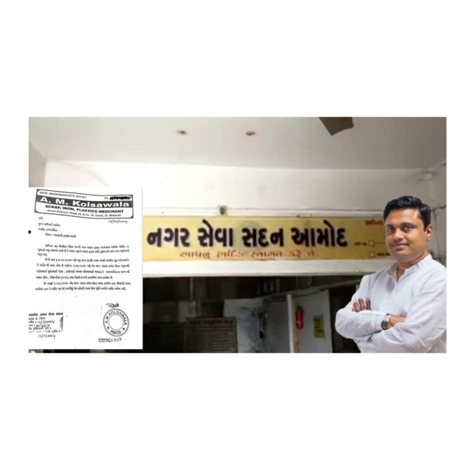 ભરૂચ જિલ્લા ના આમોદ નગર પાલિકા ના શાશક પક્ષ સામે ભ્રસ્ટાચાર ના ગંભીર આક્ષેપો થઈ રહ્યા છૅ, સ્થાનિક વેપારી દ્વારા ભંગાર હરાજી માં ભરવામાં આવેલ રકમ ની રશીદ ણ આપી પાલિકા ના હોદ્દેદારો દ્વારા ભ્રસ્ટાચાર કરાયો હોવાના આક્ષેપ એ, એમ કોલસા વાળા દ્વારા ગત તારીખ 14/03/2024 ના રોજ આમોદ પાલિકા ના મુખ્ય અધિકારી ને પત્ર લખી કરવામાં આવ્યા હતા,