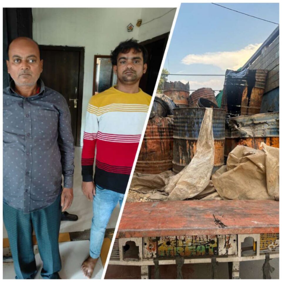 આ બનાવની પ્રાપ્ત વિગતો અનુસાર ભરૂચ જિલ્લા પોલીસ અધિક્ષક મયુર ચાવડાની સૂચના અનુસાર પોલીસ ઇન્સ્પેક્ટર એ.એ. ચૌધરી એ. એસ. ઓ. જી. ની ટીમને કાર્યરત કરતા બાતમી મળેલ કે આજથી અંદાજિત એકાદ મહિના પહેલા દિલ્હી થી મુંબઈ હાઇવે બ્રિજ નીચે દહેગામ તાલુકા જિલ્લા ભરૂચ ખાતે એક ટાટા ટ્રક માં ભરેલ પતરા ના બેરલો આશરે 50 નંગ જેટલા હોય જે શંકાસ્પદ વેસ્ટ નો ગેરકાયદેસર નિકાલ કરવામાં આવનાર હોય આથી એસ.ઓ.જી.ની ટીમે તાત્કાલિક અસરથી આ બાતમીના આધારે તપાસ કરતા દિલ્હી થી મુંબઈ હાઇવે ના બ્રિજ નીચે દહેગામ ખાતે ભરૂચમાં tata ટ્રક નંબર GJ 02 XX 5772 કિંમત રૂપિયા 12 લાખ તથા ટ્રકમાં ભરેલ પતરા ના બેરલો આશરે નંગ 50 શંકાસ્પદ વેસ્ટ આશરે વજન 12.250 કિલો કિંમત રૂપિયા 36, 138 -/ગણિ કુલ મુદ્દા માલ કિંમત રૂપિયા 12, 36,138 મળી આવતા પોલીસે જેની તપાસ હાથ ધરતા જીપીસીબી ના અધિકારીઓ મારફતે સેમ્પલો લઈ શંકાસ્પદ બિલ બાબતે અધિક રાજ્ય કમિશનર અમદાવાદ ખાતે વધુ તપાસ કરતા આ તમામ જથ્થો આર. કે. સ્ટીલ ના માલિક રમેશકુમાર કુશવાહ તેમના ગોડાઉનમાં રાખી મૂક્યો હોય આ વેસ્ટ ઓઈલ ડસ્ટ ગેરકાયદેસર રીતે નિકાલ કરવા માટે તેમના મળતીયાઓ દ્વારા નિકાલ કરવા માટે ચૌહાણ એન્ટરપ્રાઇઝ નામની ખોટી પેઢીનો જીએસટી નંબર સહિતની છેતરપિંડી કરી ખોટા બીલો બનાવી તેમનો સાચા બિલ તરીકે ઉપયોગમાં લઈ અને મોકલી આપ્યા નું જાણવા મળ્યું છે આથી પોલીસે (1)રમેશકુમાર લલય ભાઈ કુશવાહ રહે મકાન નંબર 21 સ્વસ્તિક સોસાયટી જીએનએફસી ટાઉનશીપ ની બાજુમાં તુલસીધામ બાયપાસ રોડ, ભરૂચ (2)મહમદ અલી ચૌધરી રહે આઝાદ રેસીડેન્સી દહેગામ રોડ ડુંગળી ફળિયુ વાપી જીલ્લો વલસાડ ને ઝડપી લઇ તેઓની અટકાયત કરી એસઓજીની ટીમે કાયદેસરની કાર્યવાહી હાથ ધરી આઇપીસી કલમ 284, 465 ,467, 468 ,471, 120 (બી) મુજબ ગુનો દાખલ કર્યો છે અને વડોદરા ના વોન્ટેડ આરોપી સમીમ પઠાણ તથા સુરતના કૌશર અલી ને ઝડપી પાડવા તજવીજ હાથ ધરી છે.
