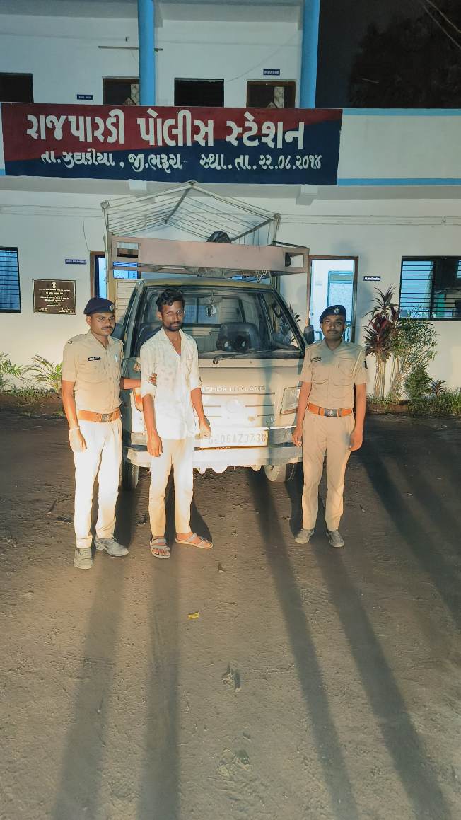 આ બનાવની પ્રાપ્ત વિગતો અનુસાર રાજ પારડી પોલીસ સ્ટેશનમાં અ.હે.કો. મહેન્દ્રભાઈ ભૂલાભાઈ ને બાતમી મળેલ કે રાજપારડીથી તરસાલી તરફ એક ટેમ્પો બે વાછરડાને કતલ કરવાના ઇરાદે તરસાલી ગામે ભરીને લઈ જનાર છે જે ચોક્કસ બાતમીના આધારે રાજપારડી થી નવી તરસાલી ગામ તરફ જવાના રોડ ઉપર પોલીસે ચુસ્ત બંદોબસ્ત ગોઠવી વોચ તપાસ કરતા તે દરમિયાન બાતમી અને હકીકતવાળો અશોક લેલેન્ડ કંપનીનો ટેમ્પો નંબર GJ- 16-AZ – 1008. ત્યાંથી પસાર થતાં રાજપારડી પોલીસે તેને રોકી લઇ તલાસી લેતા ટેમ્પોમાં ગાયના બે વાછરડા અત્યંત કુર્તાપૂર્વક દોરી વડે બાંધવામાં આવ્યા હતા જેમાં ઘાસચારો કે પાણીની કોઈપણ પ્રકારની વ્યવસ્થા ન હતી આથી પોલીસે વાછરડા , ટેમ્પો ચાલક ઇમરાન સિકંદર શાહ હુસેન શાહ દિવાન ઉંમર વર્ષ 25 રહે નવી દિવાન ફળિયુ તાલુકો ઝઘડિયા જીલ્લો ભરૂચ ને ઝડપી લઇ બે વાછરડા એક વાછરડાની કિંમત રૂપિયા 2500 લેખે બે વાછરડાના રૂપિયા 5000 તથા અશોક લેલેન્ડ કંપનીનો ટેમ્પો નંબર gj 16 az 3730 કિંમત રૂપિયા 3 લાખ તથા મોબાઈલ ફોન કિંમત રૂપિયા 5000 સહિતનો મુદ્દામાલ કબજે લઈ ટ્રક ડ્રાઇવર ઇમરાન સિકંદર શાહ ની ધરપકડ કરી પોલીસે પશુ ઘાતકીપણાનો કાયદો 1960 કલમ 11 (1)ડી એફ તથા પશુ સંરક્ષણ અધિનિયમ 1954 ની કલમ 6 એ 8410 મુજબનો ગુનો રાજપારડી પોલીસે નોંધી વોન્ટેડ આરોપી તજમુર ઝાકીર મલેક અલ્ફાજ હસન મલેક રહે અશરફનગર નવી તરસાલી તાલુકો ઝઘડિયા જિલ્લો ભરૂચ ને ઝડપી પાડવા પોલીસે ચક્રો ગતિમાન કર્યા છે.