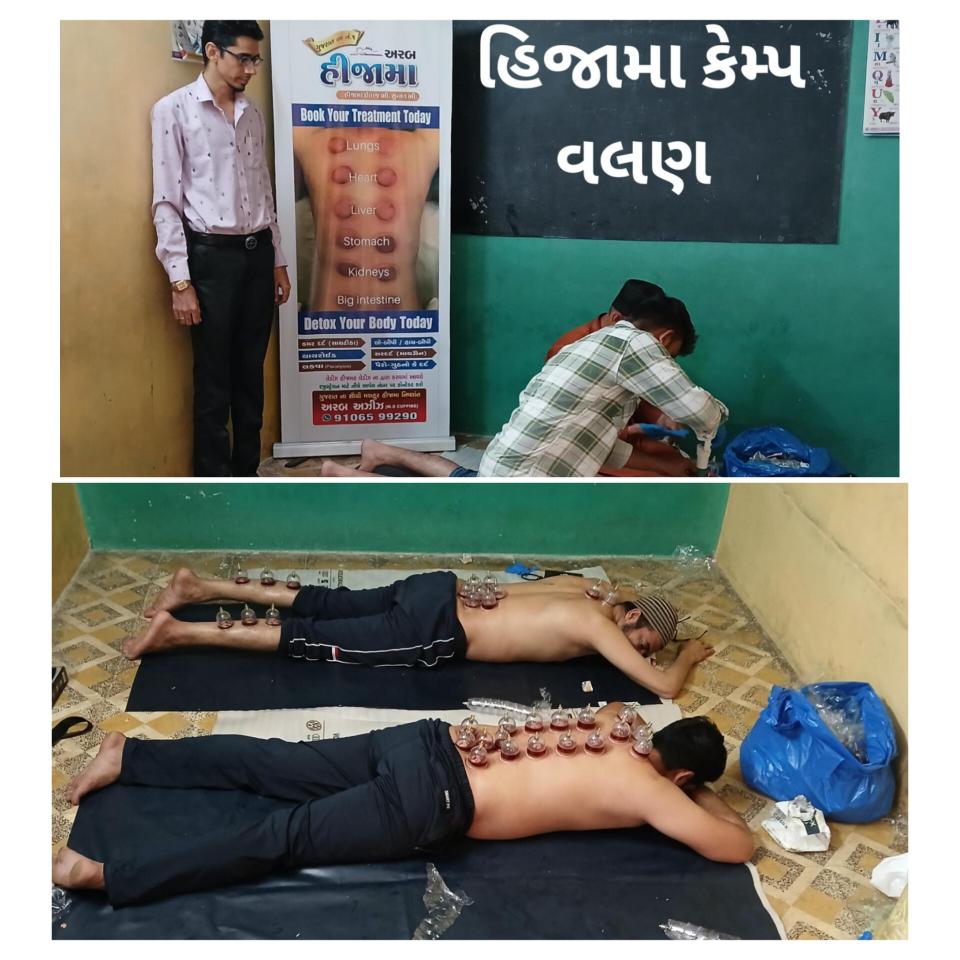વલણ ગામે ટી.કે. આઈડિઅલ ટ્રસ્ટ અને ક્લિનિક દ્વારા 6 ઠ્ઠો હિજામા કેમ્પ (કપિંગ થેરાપી) યોજાયો