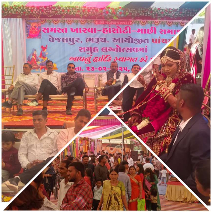 સમસ્ત ખારવા–હાંસોટી–માછી સમાજ વેજલપુર ભરૂચ ખાતે પાંચમો સમુહ લગ્નોત્સવ ઉજવવામાં આવ્યો