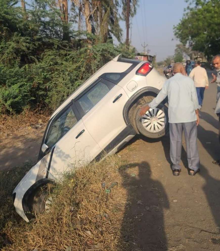ચાલકે સ્ટિયરિંગ પરનો કાબુ ગુમાવતાં કામ વરસાદી કાંસમાં ખાબકી
