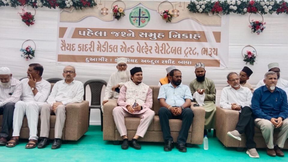 ભરૂચના મકતમપુર સાદાત નગરમાં સૈયદ કાદરી મેડીકલ એન્ડ વેલ્ફેર ટ્રસ્ટ દ્વારા પ્રથમ સમૂહલગ્નનું આયોજન કરવામાં આવ્યું જેમાં પાંચ યુગલો નિકાહના પવિત્ર બંધનમાં બાંધાયા હતા