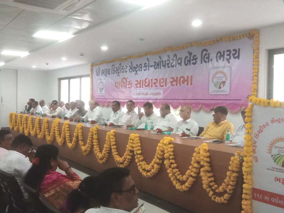 ભરૂચ ડિસ્ટ્રીક્ટ સેન્ટ્રલ કો. ઓપરેટીવ બેંકના સભાખંડમાં બેંકની 119મી સાધારણ સભાનું આયોજન થયું હતું. બેંકના ચેરમેન તેમજ વાગરાના ધારાસભ્ય અરુણસિંહ રણાએ સભાને સંબોધિત કરતા જણાવ્યું હતું કે, બેંકએ આજે ઉત્કૃષ્ટ વિકાસ કર્યો છે. 25 વર્ષ અગાઉ ભાડાના મકાનમાં કાર્ય શરૂ કરનાર બેંક આજે પોતાની બે હેડ ઓફિસ ધરાવે છે અને જિલ્લામાં કુલ 19 શાખાઓ પોતાની બિલ્ડીંગમાં સફળતાપૂર્વક કાર્યરત છે. તેમણે સહકારી ક્ષેત્ર માટે સરકારે અમલમાં મૂકી રહેલી નવી યોજનાઓ અંગે માહિતી આપી. આવા પ્રયાસોથી ખેડૂતો સહિત સહકારી સંસ્થાઓ સાથે જોડાયેલા લોકોના સર્વાંગી વિકાસને વેગ મળ્યો હોવાની લાગણી વ્યક્ત કરી. તેમણે દેશના વડાપ્રધાન નરેન્દ્ર મોદી તથા ગૃહમંત્રી અમિત શાહનો આ અભૂતપૂર્વ સહકાર બદલ આભાર માન્યો. આ પ્રસંગે બેંકના હોદ્દેદારો, કર્મચારીઓ, આગેવાનો, મંડળીના ચેરમેનો તેમજ મોટી સંખ્યામાં ખેડૂતો ઉપસ્થિત રહ્યા હતા.