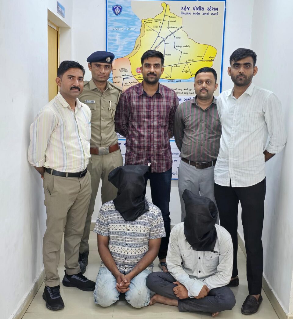 બનાવ સંદર્ભે તેમણે દહેજ પોલીસ મથકે કરિયાદ નોંધાવતા પોલીસે આરોપીઓના સગડ મેળવવા માટે તમામ પાસાઓની તપાસ શરૂ કરી હતી. પીઆઈ એચ. બી. ઝાલાએ તેમની ટીમ મારફતે આસપાસના ૧૦૦થી વધુ સીસીટીવી ફૂટેજ તપાસ્યા હતાં. દરમિયાનમાં આરોપીઓ એક બાઈક પર દહેજથી આમોદ જવાના રોડ પર હોવાનું માલુમ પડતાં ટીમે તેમને પણિયાદરા ચોકડી પાસે ઝડપી પાડી આગળની કાર્યવાહી હાથ ધરી છે.