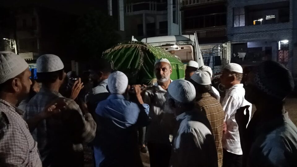રાત્રે ઈશાની નમાઝ બાદ મર્હુમા હસીનાબેન તાજુના જનાઝાને દફન વિધી માટે કબ્રસ્તાન લઈ જવામાં આવ્યો હતો. મર્હુમા હસીનાબેનના જનાજામાં ખુબ જ મોટી સંખ્યામાં ગ્રામજનો જોડાયા હતા. મર્હુમાં હસીનાબેન તાજુની દફનવિધીમાં વાગરા તાલુકા સમિતિના અધ્યક્ષ આસીક પટેલે પણ હાજરી આપી હતી. યુ.કે.તેમજ દુબઈથી દફનવિધીમાં હાજરી આપવા આવેલા અલ્તાફ તાજુ તેમજ રિયાઝ મુસાને મર્હુમ આદમભાઈ તાજુ તેમજ મહુમાં હસીનાબેન તાજુની ડેડ બોડી સોંપવા માટે અમદાવાદ જિલ્લા સમાહર્તાં તેમજ એર ઈન્ડિયા સ્ટાફ દ્વારા જે કામગીરી કરવામાં આવી તેને બિરદાવી જિલ્લા સમાહર્તા તેમજ એર ઈન્ડિયા સ્ટાફનો આભાર વ્યકત કર્યો હતો.