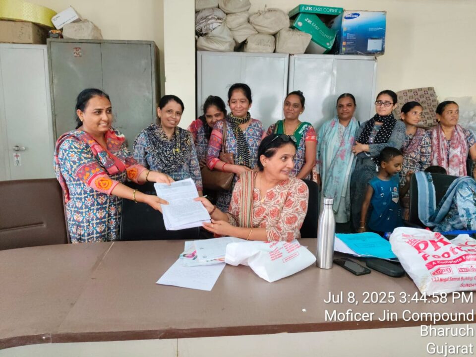 ભરૂચ જિલ્લામાં ગુજરાત આંગણવાડી કર્મચારી સંગઠન રાષ્ટ્રીય હેડ યુનિયન સીઆઈટીયુ ( સેન્ટર ઓફ ઈન્ડિયન ટ્રેડ યુનિયન્સ) હેઠળ ઓલ ઈન્ડિયા કાઉન્ડેશન ઓફ આંગણવાડી વર્કર એન્ડ હેલ્પર્સ(આઈફા) સાથે સંકળાયેલું છે. ત્યારે આંગણવાડી બહેનો દ્વારા રાજ્ય અને કેન્દ્ર સરકાર પાસે લાંબા સમયથી માગણીઓ કરી રહી છે કે, કેન્દ્ર સરકાર દ્વારા ૨૦૧૮ પછી કોઈ પણ જાતનો વેતનમાં વધારો કરવામાં આવ્યો નથી. ઉપરાંત રોજે રોજ પોષણ ટ્રેકરના નામે માનસિક ત્રાસ ગુજારવામાં આવી રહ્યો છે. રાજ્ય સરકારનો વધારાની કામગીરી નહી કરાવવાનો પરિપત્ર હોવા છતાં આંગણવાડીઓને વધારાનું કામ આપીને બાળકોને શિક્ષણથી વંચિત કરવામાં આવી રહ્યા છે. એફએસઆરને નામે લાભાર્થીના પોષણ અધિકારો છીનવી આંગણવાડી વર્કરોના વેતનમાં કપાત કરવામાં આવી રહ્યાં છે. ત્યારે વહિવટી તંત્ર દ્વારા કરાતાં આગણવાડીઓના શોષણના વિશેષમાં બુધવારે ગુજરાત આંગણવાડી કર્મચારી સંગઠનના તમામ આંગણવાડી વર્કરો-હેલ્પરોએ માસ સીએલ પર રહી કામગીરીથી અળગા રહ્યાં હતા.