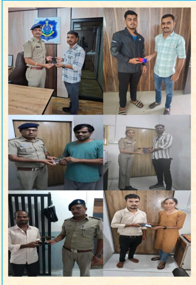અંકલેશ્વર જી.આઇ.ડી.સી. પોલીસ સ્ટેશનના ઇન્ચાર્જ એન.સી. પટેલ તથા તેમની ટીમ દ્વારા આજરોજ 31મી જૂલાઇના રોજ અનેક નાગરિકોના ગુમ થયેલા મોબાઇલ ફોન તેમને પરત કરવામાં આવ્યાં હતાં. જીઆઇડીસી વિસ્તારમાં અલગ અલગ સમયે ચોરી થયેલાં મોબાઇલ અંગે જેતે મોબાઇલ માલિકોએ જીઆઇડીસી પોલીસ મથકે ફરિયાદ નોંધાવી હતી. દરમિયાનમાં પોલીસે ચોરી થયેલાં શોધી કાઢવા માટે ખાસ પ્રયાસ હાથ ધરવામાં આવ્યાં હતાં. દરમિ્યાનમાં પોલીસે અલગ અલગ રીતે તપાસ હાથ ધરતાં પોલીસે કુલ ૧૦ જેટલા મોબાઇલ ફોન શોધી કાઢ્યાં હતાં. જે બાદ સી.ઇ.આઈ.આર પોર્ટલ અને ટેક્નિકલ સહાયતા દ્વારા ટ્રેસ કરી તેમને પરત આપ્યા છે. પોલીસના જણાવ્યા મુજબ, ગુમ થયેલા મોબાઇલ ફોનની કિંમત અંદાજે રૂ. ૨,૩૪,૫૦૦/- જેટલી થાય છે. આ કામગીરીની પાછળ પોલીસની ટેક્નિકલ ટીમ તેમજ સાઇબર ક્રાઇમ વિભાગે મહત્વનો રોલ નિભાવ્યો છે.