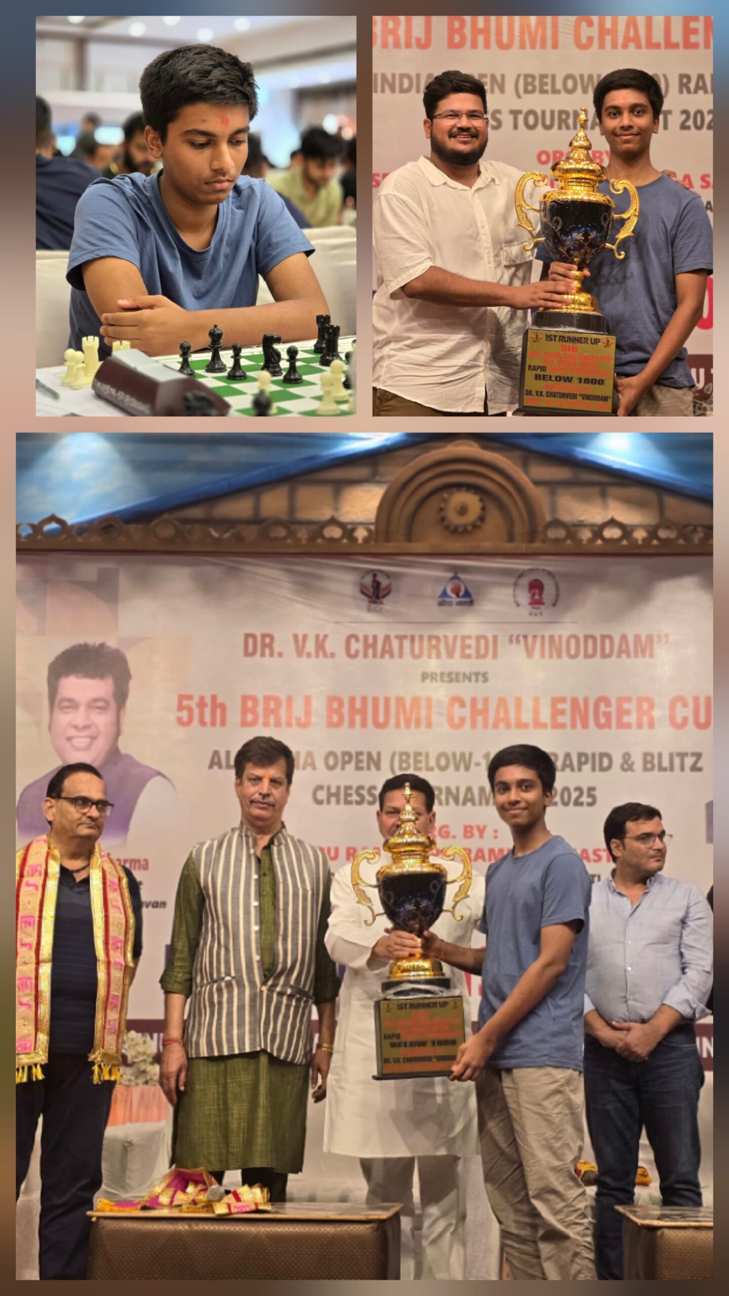 વૃંદાવન ખાતે 2 અને 3 ઓગષ્ટના રોજ 5મી B2C2 ઓલ ઈન્ડિયા રેપિડ ચેસ ટુર્નામેન્ટનું આયોજન કરવામાં આવ્યું હતું. જેમાં ભરૂચના અંક્લેશ્વરમાં રહેતાં વેદાંત વરસાદાએ પ્રતિષ્ઠિત વૃંદાવન ટુર્નામેન્ટમાં 7.5/9 પોઈન્ટ સાથે શાનદાર ત્રીજું સ્થાન મેળવ્યું હતુ઼ં તેમજ ₹30,000 નું રોકડ ઇનામ પણ મેળવ્યું હતું. તેમના ઉત્કૃષ્ટ પ્રદર્શને ભરૂચ જિલ્લા ચેસ એસોસિએશનનું ગૌરવ વધાર્યું છે અને ઘણી યુવા પ્રતિભાઓને પ્રેરણા આપી છે. BDCA તેમના સમર્પણની પ્રશંસા કરે છે અને ભવિષ્યની ટુર્નામેન્ટ માટે તેમને શુભેચ્છા પાઠવે છે. અમને ગર્વ કરાવતા રહો, વેદાંત!
