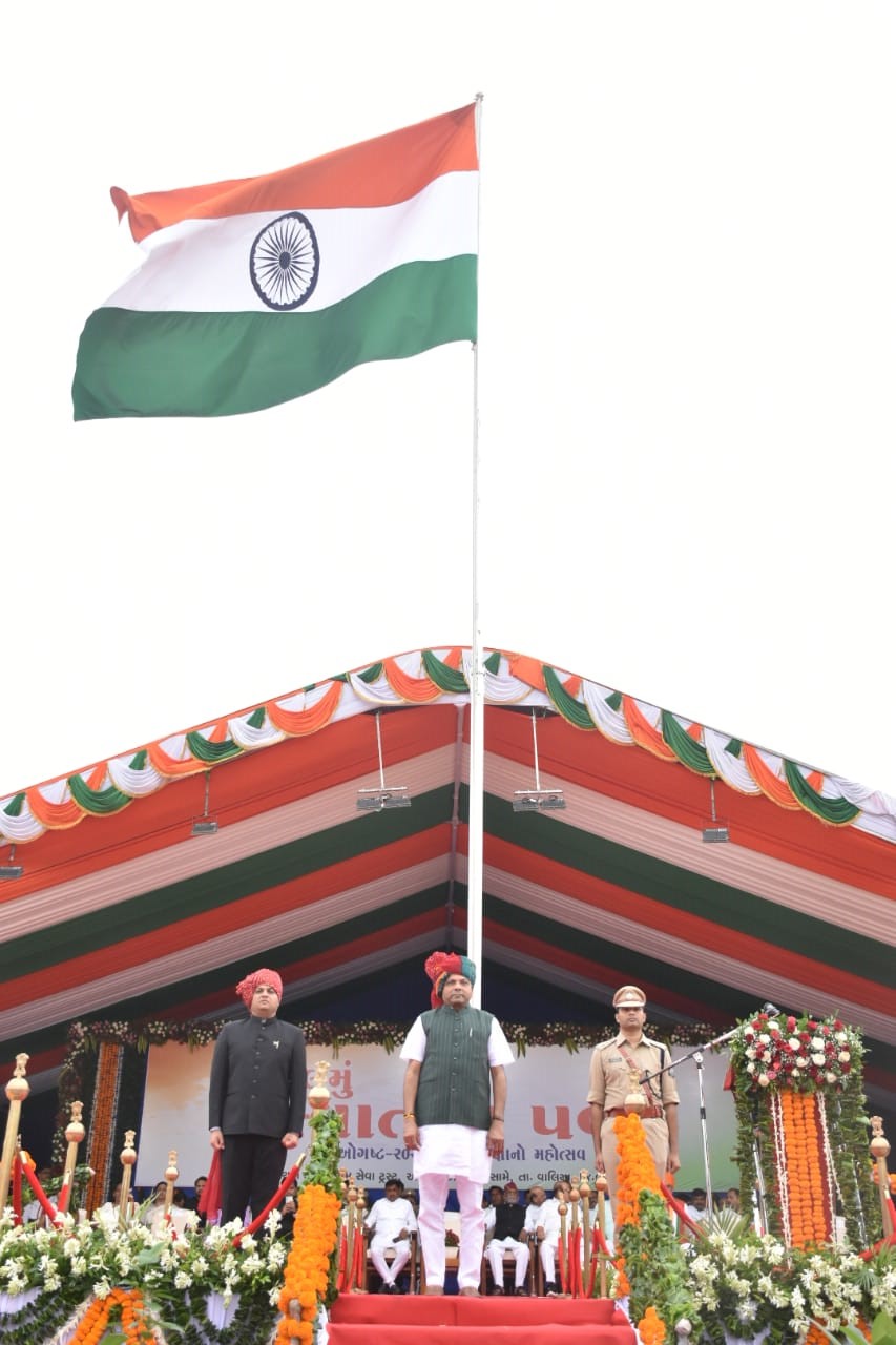 ભરૂચ જિલ્લામાં આધ્યાત્મિક તપોભૂમિ તરીકે ઓળખ ધરાવતાં વાલિયા ખાતે આવેલા સીતારામ સેવા ટ્રસ્ટના કમ્પાઉન્ટ ખાતેથી રાજ્યના વન અને પર્યાવરણ, કલાઈમેટ ચેન્જ, જળસંપત્તિ અને પાણીપુરવઠા વિભાગ રાજ્યકક્ષાના મંત્રી મુકેશભાઈ પટેલની ગરીમામય ઉપસ્થિતિમાં જિલ્લા કક્ષાના ઘ્વજવંદન સમારોહની આન-બાન-શાન સાથે ગૌરવભેર ઉજવણી કરવામાં આવી હતી.
