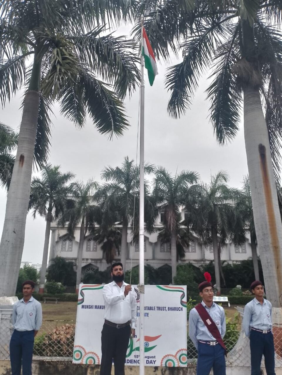 મુન્શી(મનુબરવાલા) મેમોરીયલ ચેરિટેબલ ટ્રસ્ટ, દહેજ બાય પાસ રોડ, ભરુચ સંચાલિત શાળા/કોલેજના વિદ્યાસંકુલમાં ૭૯માં સ્વતંત્ર પર્વ નિમિત્તે ધ્વજવંદનના કાર્યક્રમનું આયોજન કરવામાં આવ્યું હતું. જેમાં મુન્શી(મનુબરવાલા) મેમોરીયલ ચેરિટેબલ ટ્રસ્ટના સ્ટોર ઇનચાર્જ શ્રી સુફિયાન રશીદ પટેલના વરદ હસ્તે ધ્વજવંદન કરવામાં આવ્યું હતું.