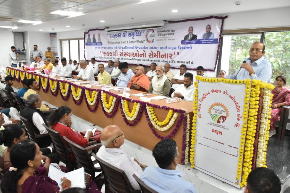 ઘી ભરૂચ ડીસ્ટ્રીક્ટ સેન્ટ્રલ કો. ઓ.પ. બેંક લી. ખાતે સહકાર રાજ્યમંત્રી જગદીશ વિશ્વકર્માના અધ્યક્ષસ્થાને સહકારથી સમૃદ્ધિ અંતર્ગત ઉત્કૃષ્ટ કામગીરી કરતી સેવા સહકારી મંડળીઓ, દૂધ ઉત્પાદક સહકારી મંડળીઓનો સેમિનાર સહ સંવાદ કાર્યક્રમ યોજાયો હતો. ભરૂચ જિલ્લાની સહકારી મંડળીઓના જિલ્લા રજિસ્ટ્રાર, ભરૂચ ડિસ્ટ્રીક્ટ બેન્ક અને ભરૂચ ડેરીના સંયુક્ત ઉપક્રમે આ કાર્યક્રમનું આયોજન કરવામાં આવ્યું હતું આ પ્રસંગે ‘સહકારથી સમૃદ્ધિ‘ અંતર્ગત ઉત્કૃષ્ટ કામગીરી કરનારી સેવા સહકારી મંડળીઓના પ્રતિનિધિઓને મંત્રીશ્રી અને ઉપસ્થિત મહાનુભાવોના હસ્તે સન્માનિત કરવામાં આવ્યા હતા. આ તકે, સહકાર મંત્રી વિશ્વકર્માએ જણાવ્યું હતું કે સહકારીતાનો મુખ્ય ઉદ્દેશ સામુહિક ઉત્કર્ષનો છે, દેશમાં ૭૫ વર્ષ બાદ સહકારીતા વિભાગ દેશના યશવસ્વી પ્રધાનમંત્રી નરેન્દ્રભાઇ મોદીએ શરૂ કરી છે. આ સહકારીક્ષેત્રનો વિકાસ અવિરત પણે છેલ્લા ૪ વર્ષથી દેશના સહકારમંત્રી શ્રી અમીતભાઇ શાહના માર્ગદર્શનમાં પારદર્શિતા અને જવાબદારીથી આગળ વધી રહ્યો છે. મુખ્યમંત્રીશ્રી ભૂપેન્દ્ર પટેલના નેજા હેઠળ સમગ્ર ગુજરાતમાં સહકારીક્ષેત્રનો વધુને વધુ વિકાસ થાય એ માટે અમે સર્વે પ્રયાસરત રહી કામગીરી કરી રહ્યા છે. મંત્રીએ ઉમેર્યું હતું કે, રાજ્યના તમામ ગામડાઓ સહકારી મંડળી વિના ન રહે તેની ચિંતા સરકારે કરી છે, સહકારી ક્ષેત્રમાં પારદર્શિતા, જવાબદારી અને ટેક્નોલોજીના ઉપયોગ પર ભાર મૂકતા સહકારીક્ષેત્રે આવેલ પરીવર્તન પેક્સ કોમ્પ્યુટરાઇઝેશન, મોડલ બાયલોઝ, સહકારીક્ષેત્રે ભરતી, વિવિધ પેક્સ દ્વારા કરવામાં આવતી અનેક પ્રવૃત્તિઓ વિશે વિગતે માહિતી આપી સહકારી અગ્રણીઓને પ્રોત્સાહિત કર્યા હતા.